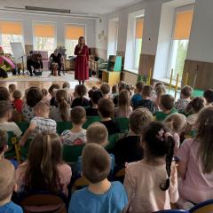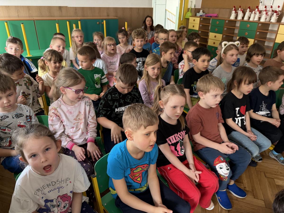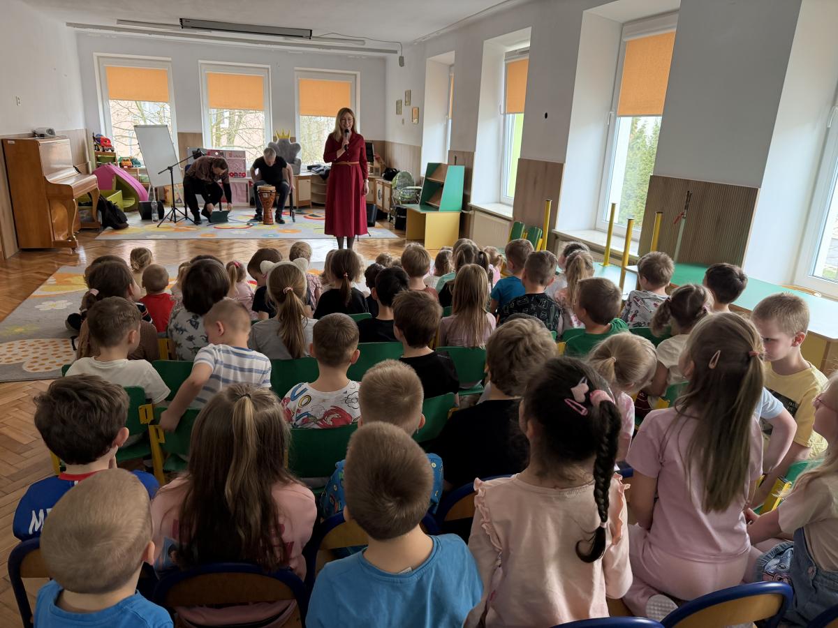 19 marca w naszym przedszkolu odbył się koncert pt. „Wiosna! Ach to ty!” Muzycy Filharmonii Świętokrzyskiej wprowadzili dzieci w radosny, wiosenny nastrój. W sali rozbrzmiewały utwory zapowiadające budzącą się przyrodę oraz piosenki pełne radości, słońca, śpiewu ptaków i kolorowych kwiatów.