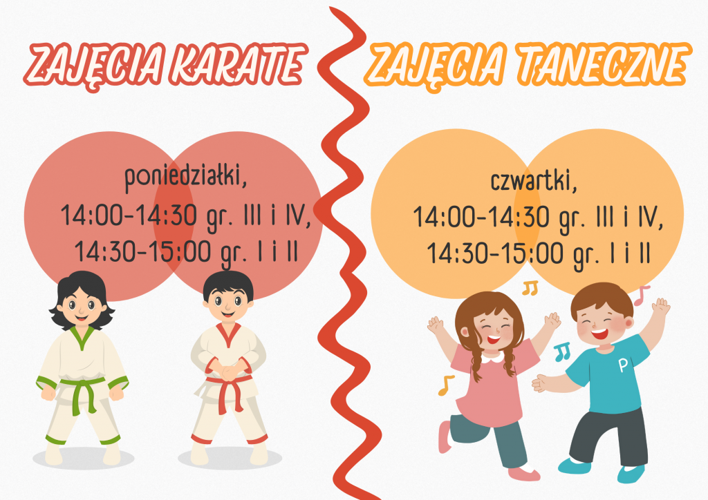 Opłaty za zajęcia taneczne oraz karate należy uiszczać w pierwszy czwartek każdego miesiąca.