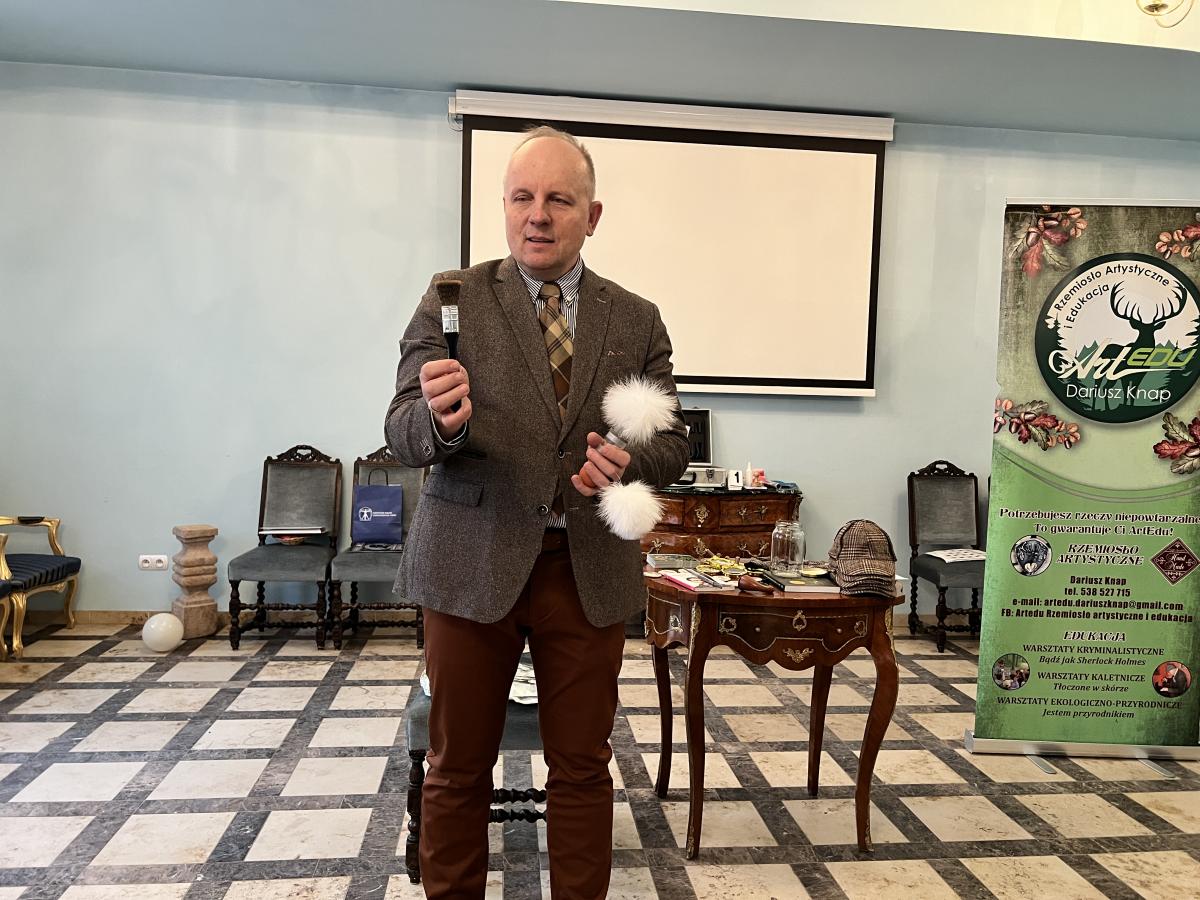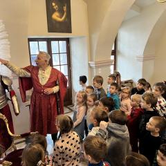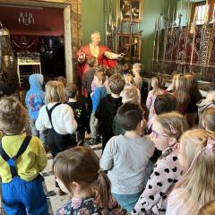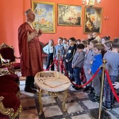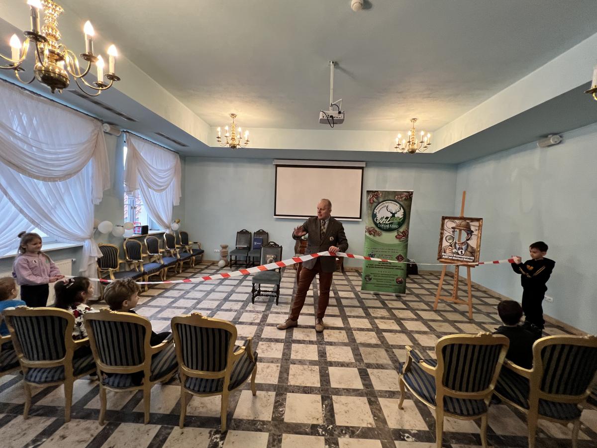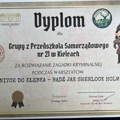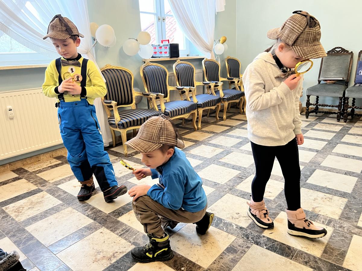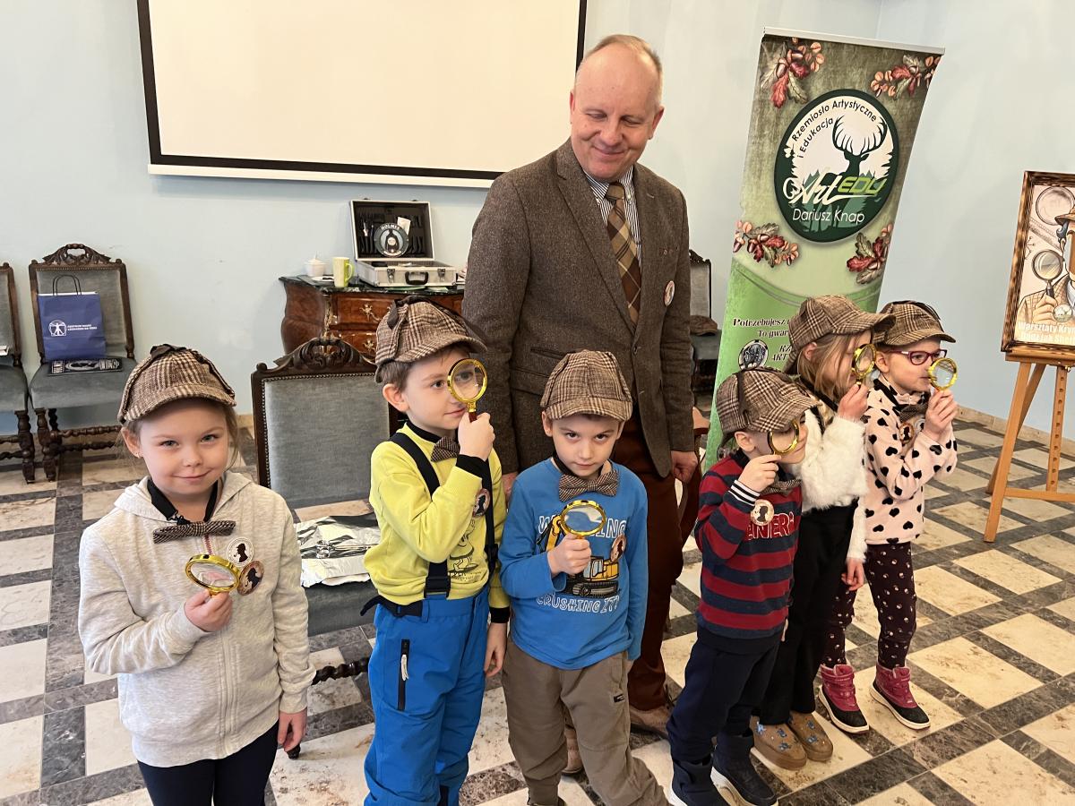 Przedszkolaki z grupy III oraz IV wyruszyły na wycieczkę do Dworu Starostów Chęcińskich, gdzie z zaciekawieniem wysłuchiwały opowieści Starosty i z zachwytem podziwiały eksponaty. Ponadto, wzięły udział w warsztatach kryminalistycznych „Po nitce do kłębka” prowadzonych przez znanego nam wszystkim pana Darka - tym razem jako Sherlock Holmes. ;) Młodzi detektywi znakomicie poradzili sobie z rozwikłaniem zagadek.