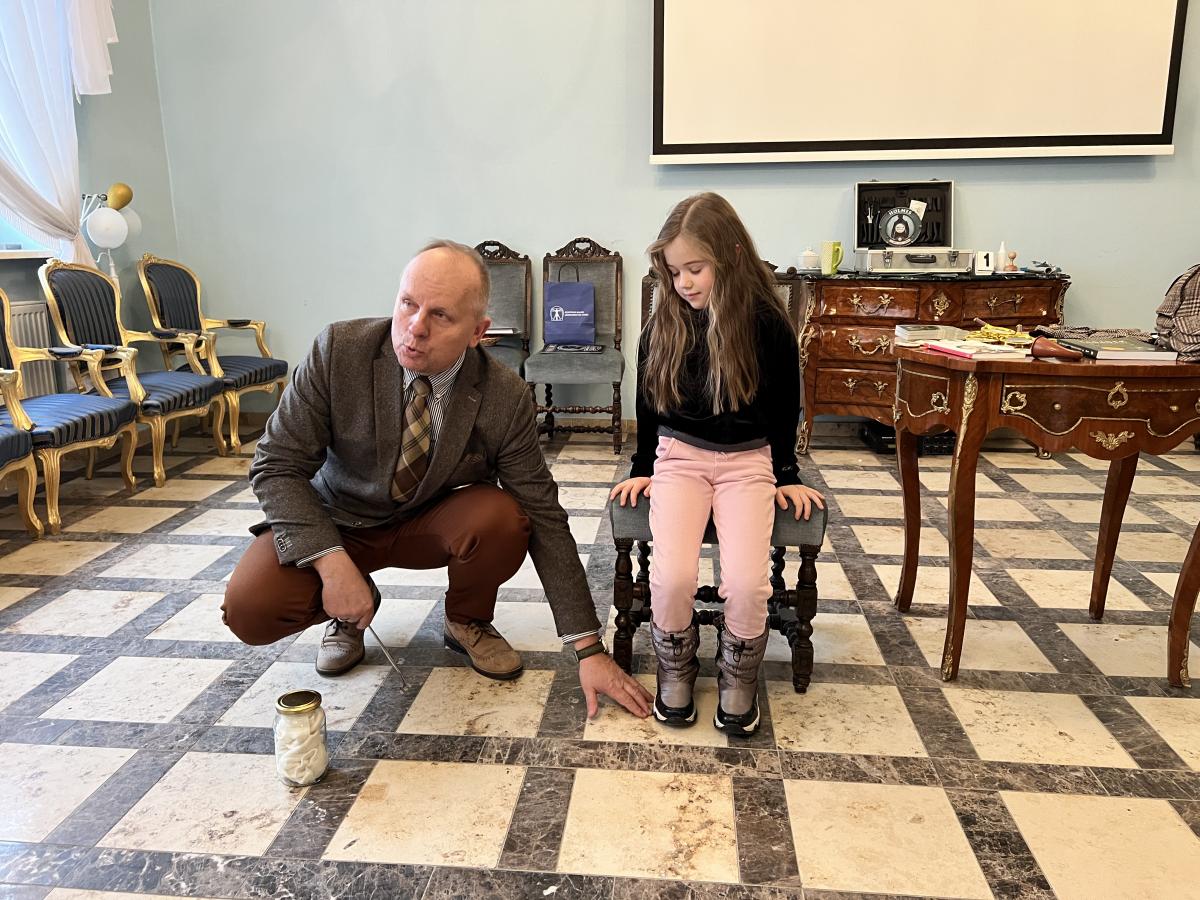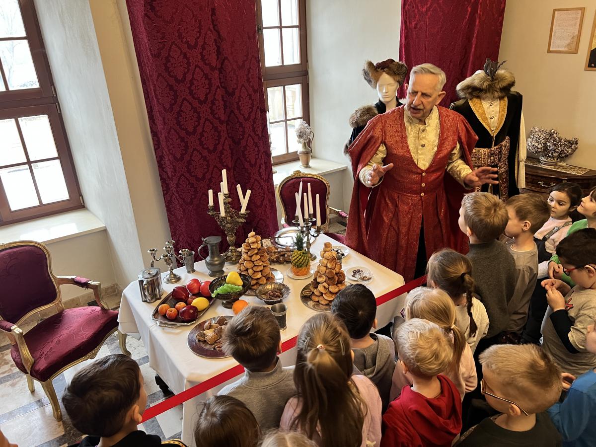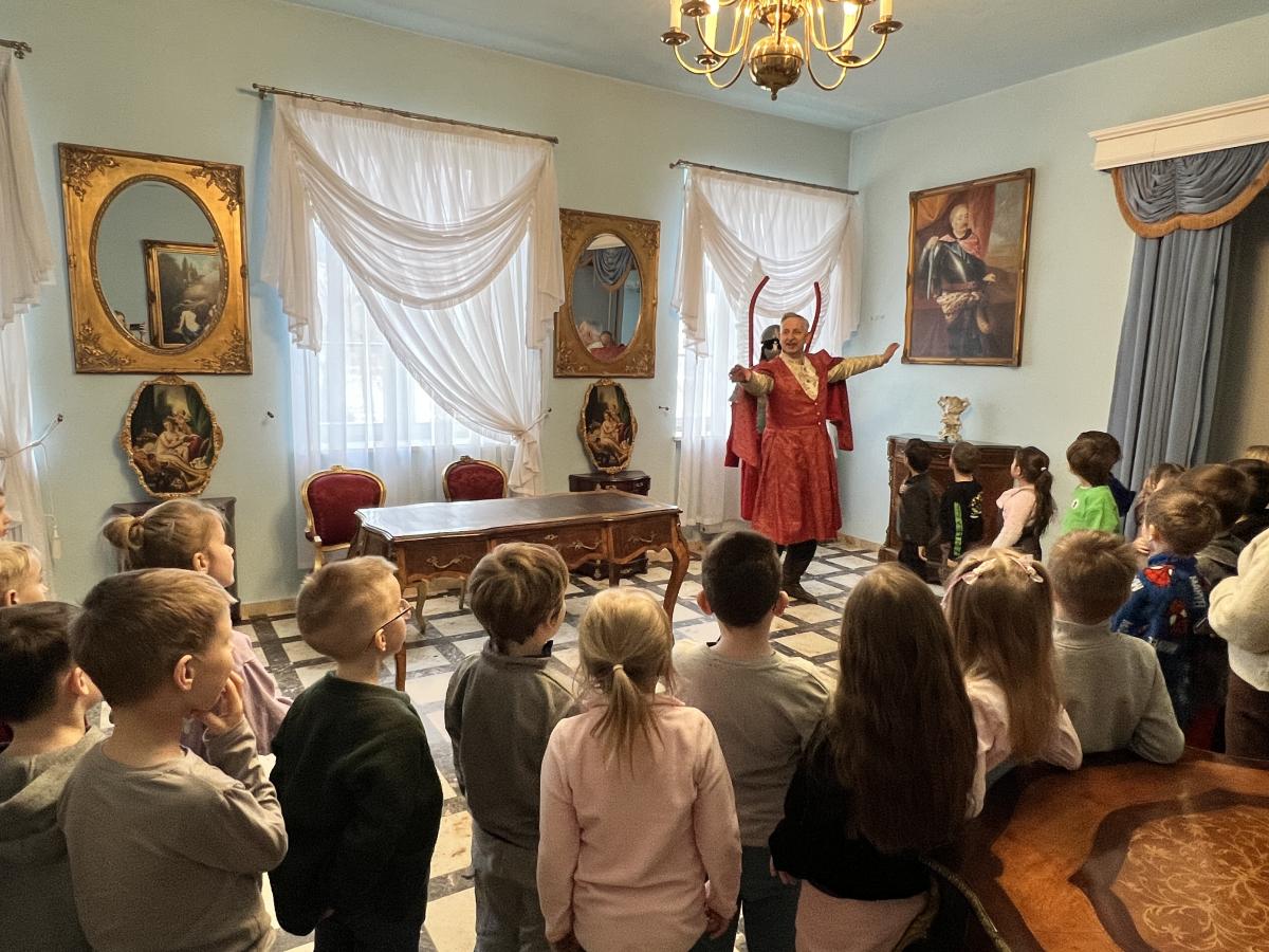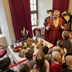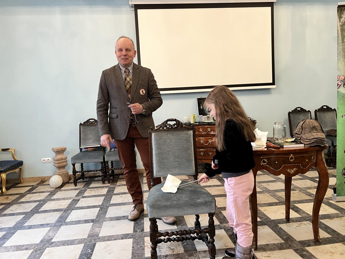Przedszkolaki z grupy III oraz IV wyruszyły na wycieczkę do Dworu Starostów Chęcińskich, gdzie z zaciekawieniem wysłuchiwały opowieści Starosty i z zachwytem podziwiały eksponaty. Ponadto, wzięły udział w warsztatach kryminalistycznych „Po nitce do kłębka” prowadzonych przez znanego nam wszystkim pana Darka - tym razem jako Sherlock Holmes. ;) Młodzi detektywi znakomicie poradzili sobie z rozwikłaniem zagadek.