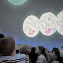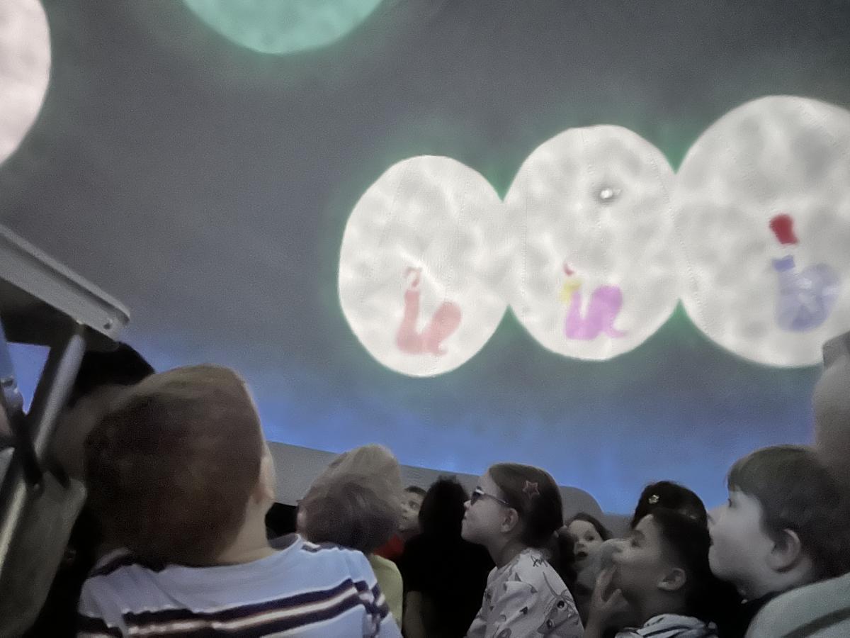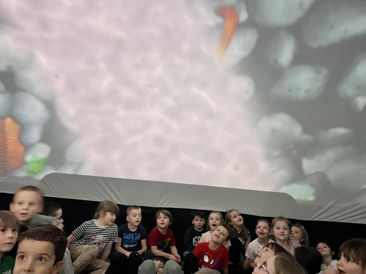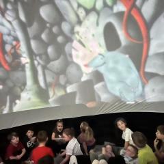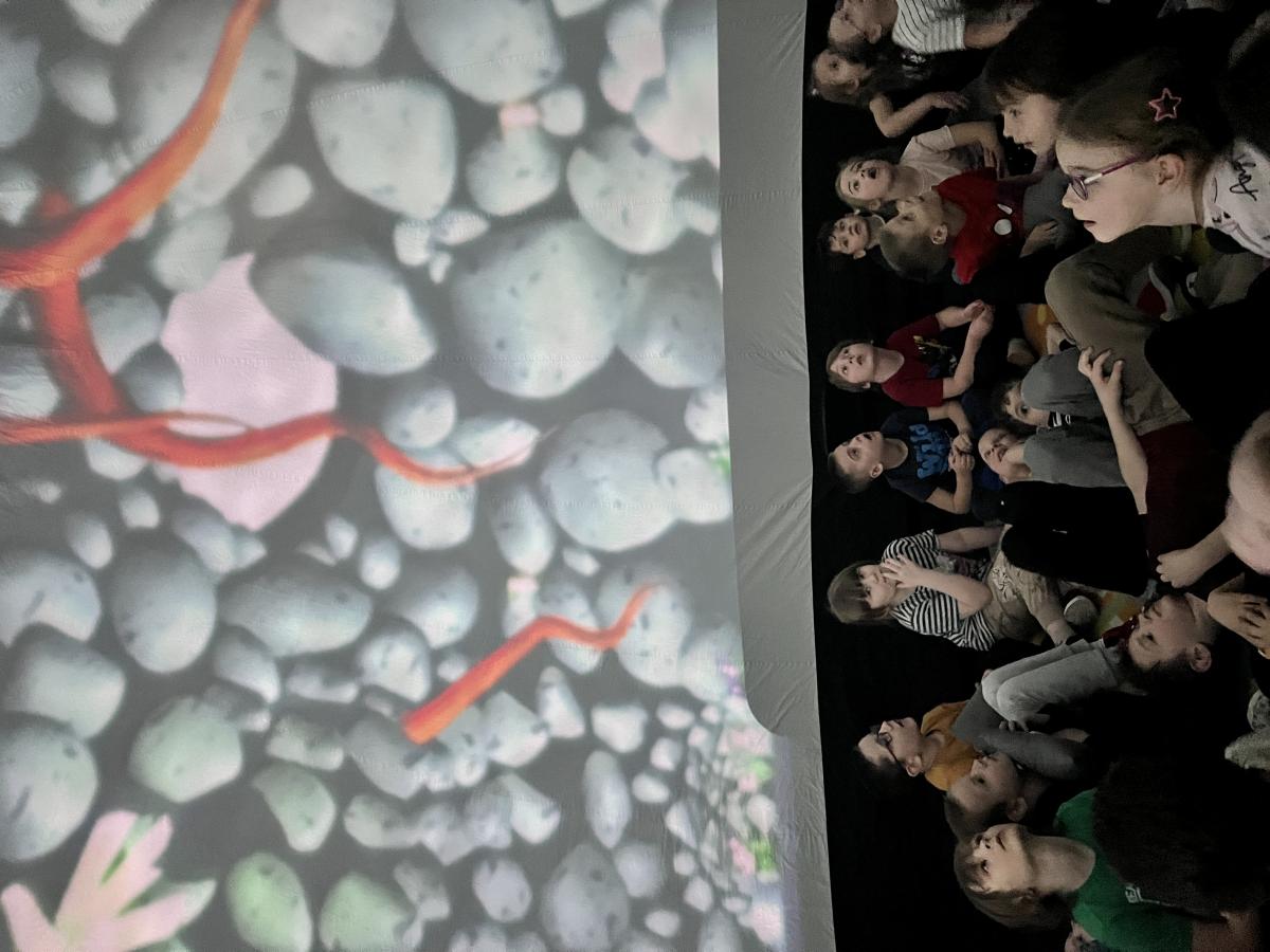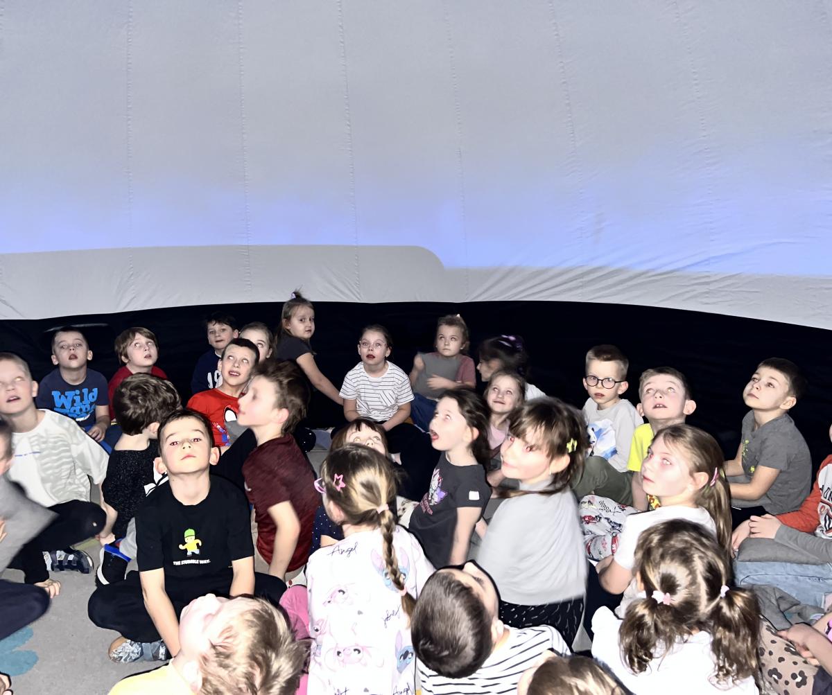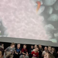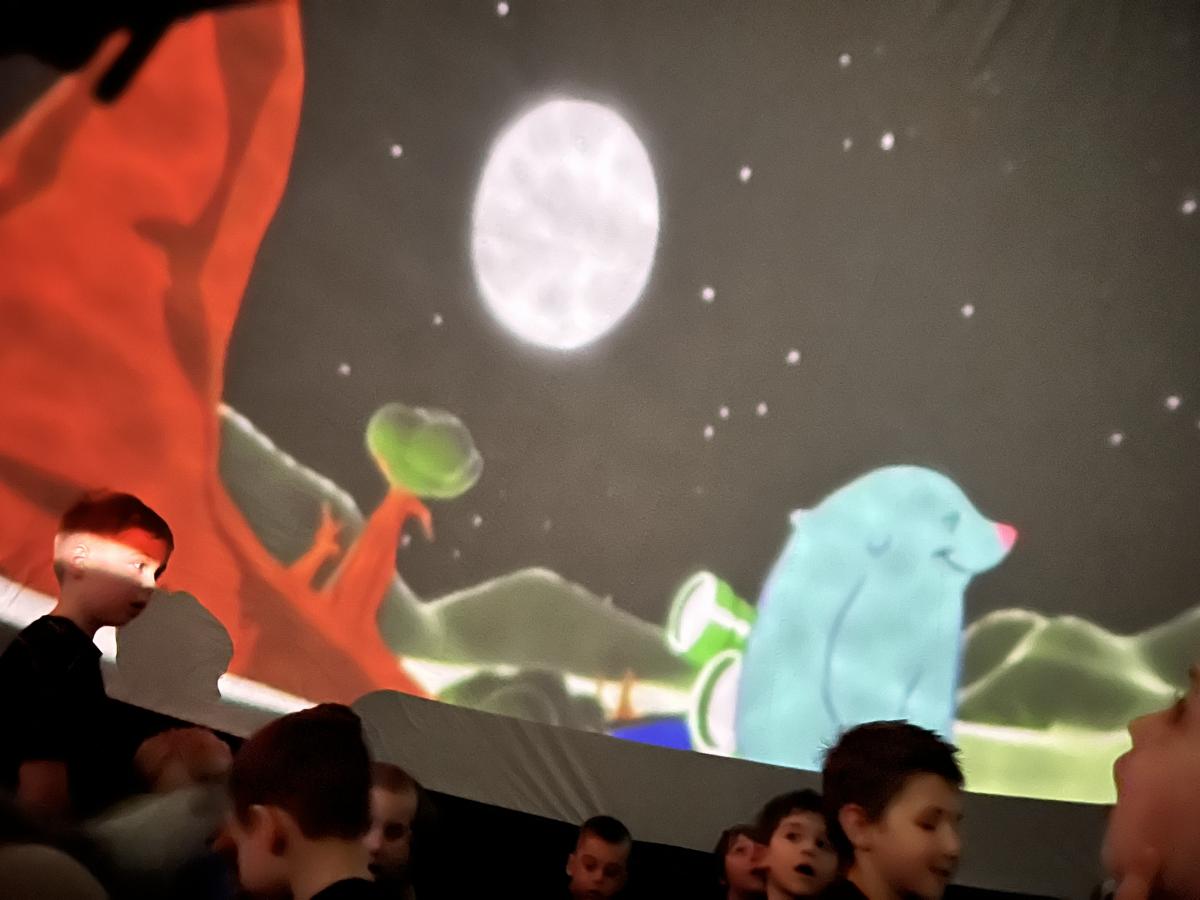 Przedszkolaki wzięły dziś udział w seansie filmowym pt. „Krecik odkrywa świat”, który odbył się w mobilnym kinie 3D. Bohater filmu pragnie zostać odkrywcą i zobaczyć cały wszechświat. Wraz z krecikiem dzieci przeniosły się w świat astronomii, a przygody zwierzątka pomogły poznać świat wokół nas i życie na Ziemi.