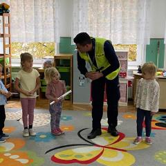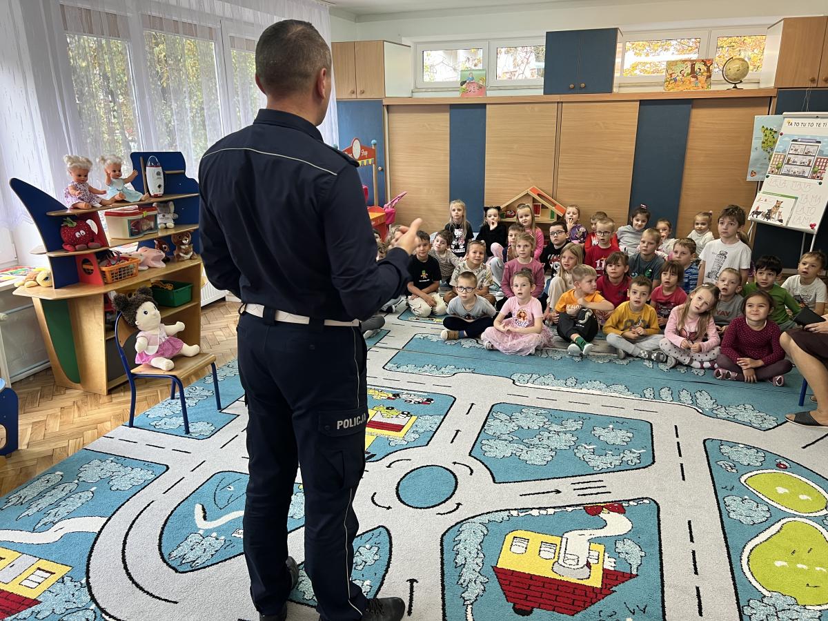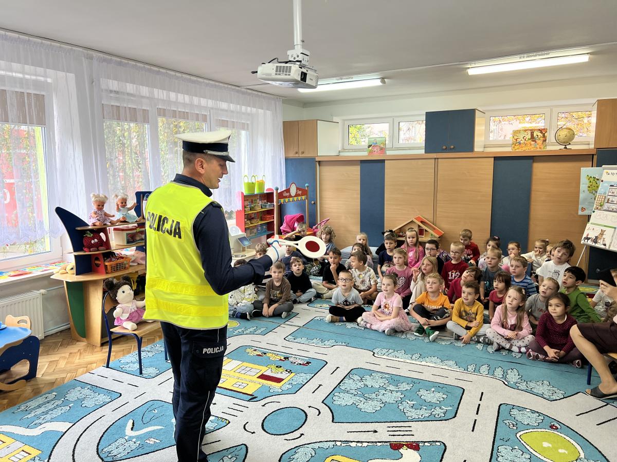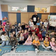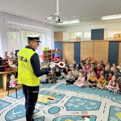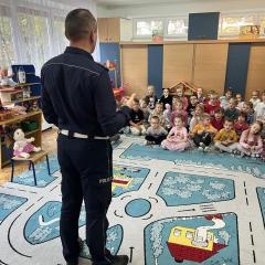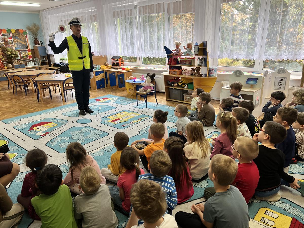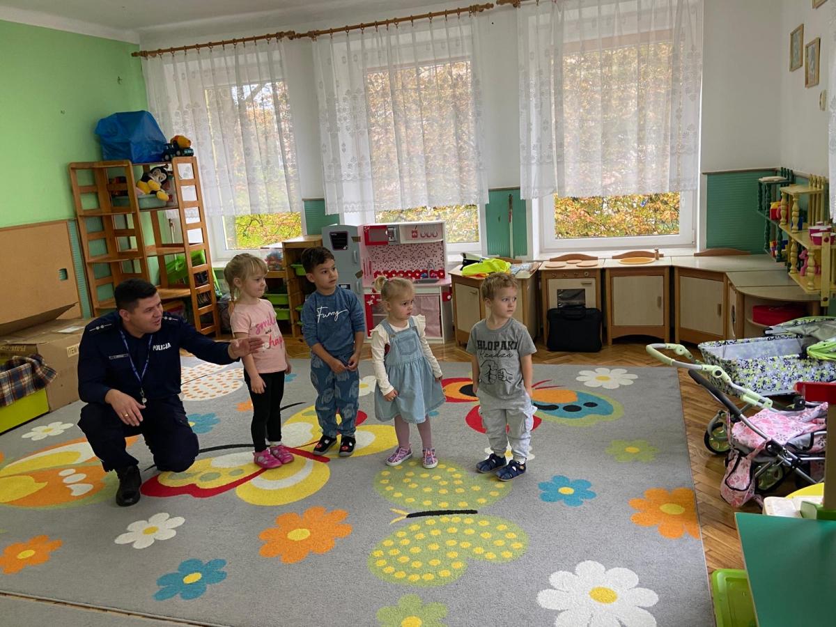 14 października dzieci z naszego przedszkola wzięły udział w zajęciach edukacyjnych prowadzonych przez funkcjonariuszy policji z WRD KWP w Kielcach. W trakcie spotkania poruszane były tematy codziennej pracy policji, bezpieczeństwa w ruchu drogowym oraz sposobów zachowania w sytuacjach zagrożenia. Na zakończenie spotkania dzieci wręczyły samodzielnie wykonane laurki i dyplomy z podziękowaniami.