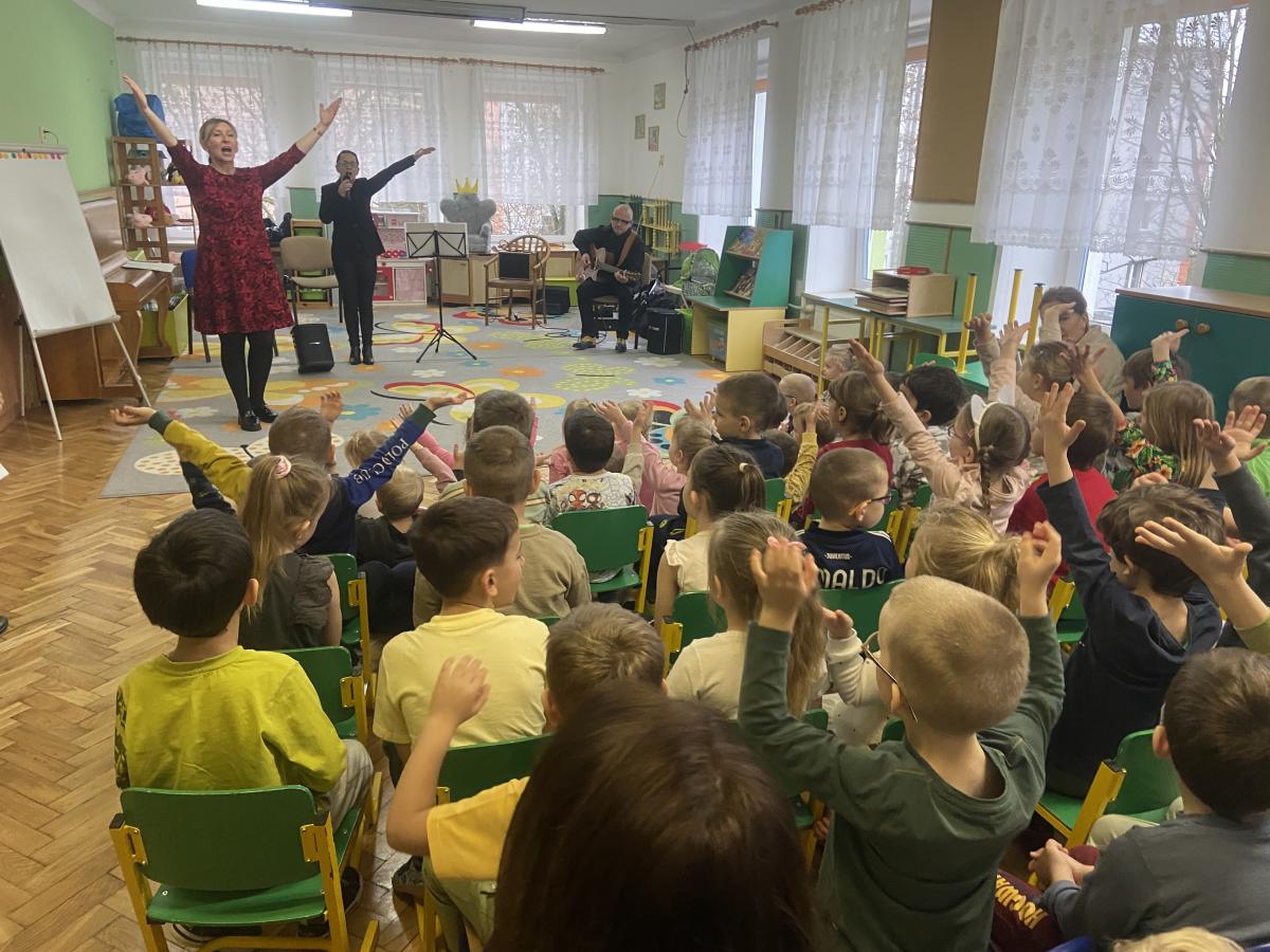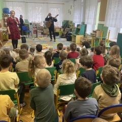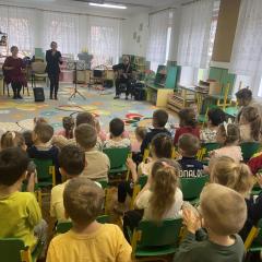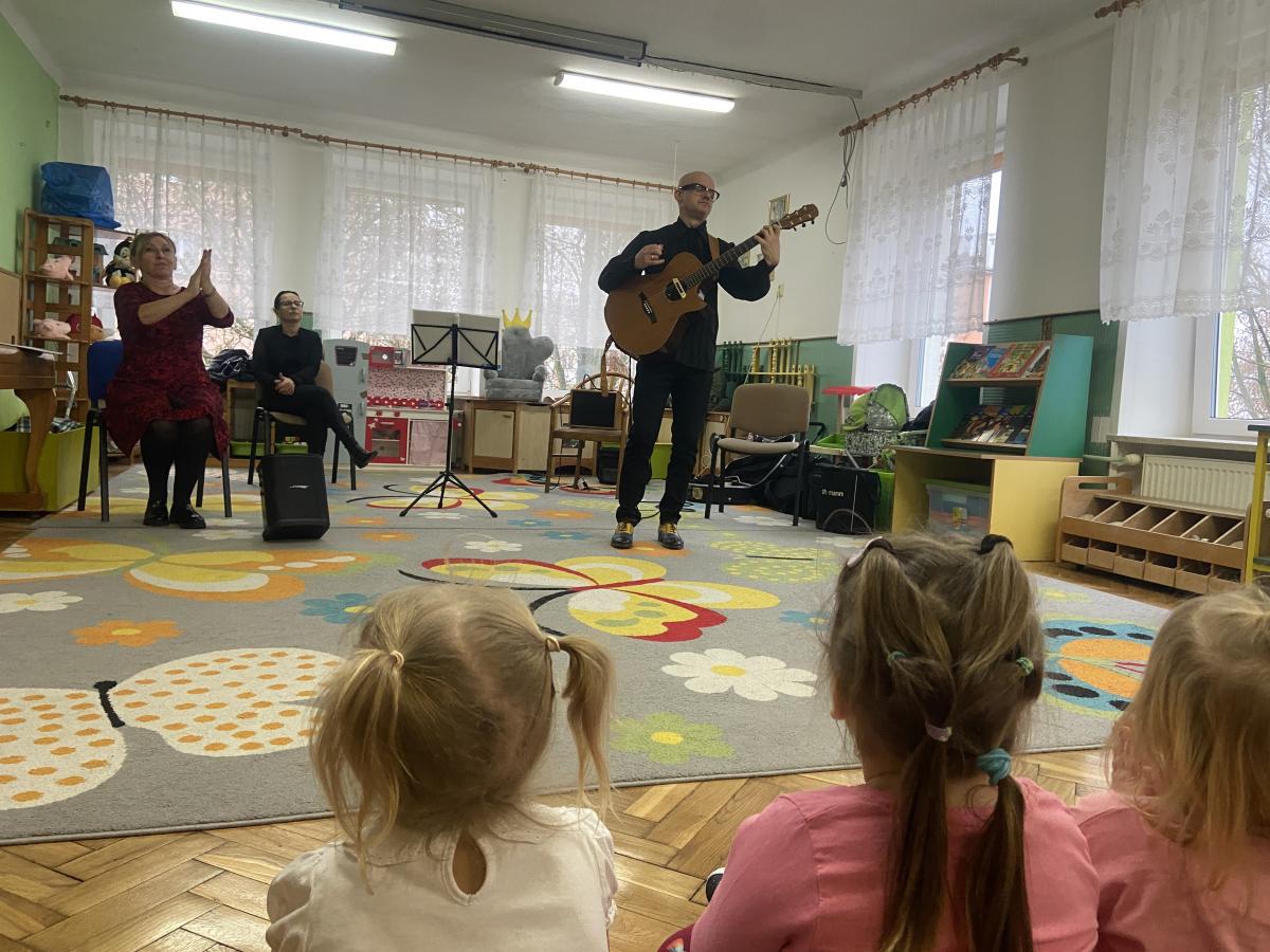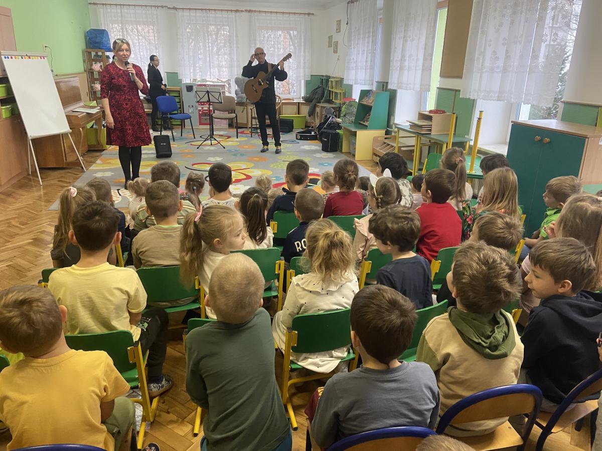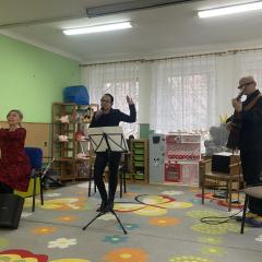 15 grudnia w naszym przedszkolu odbył się koncert w wykonaniu muzyków z Filharmonii Świętokrzyskiej pt. „Opowieść wigilijna”. Podczas muzycznego spotkania dzieci wysłuchały historii pełnej magii i tradycji, którą ilustrowały kolędy z różnych stron świata i świąteczne piosenki.