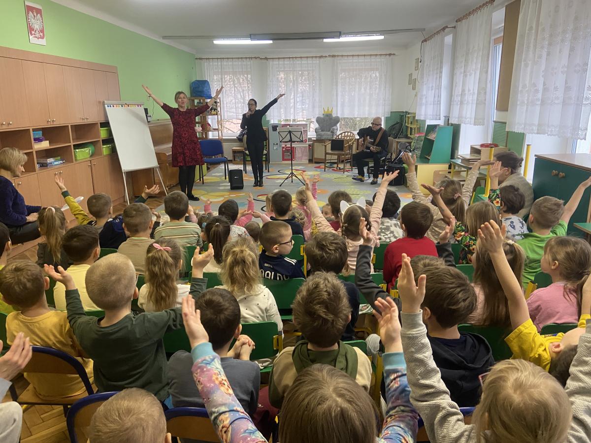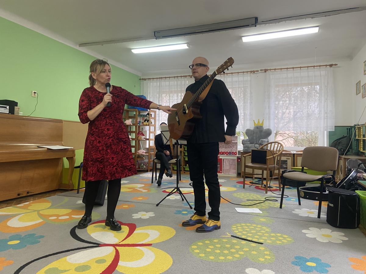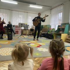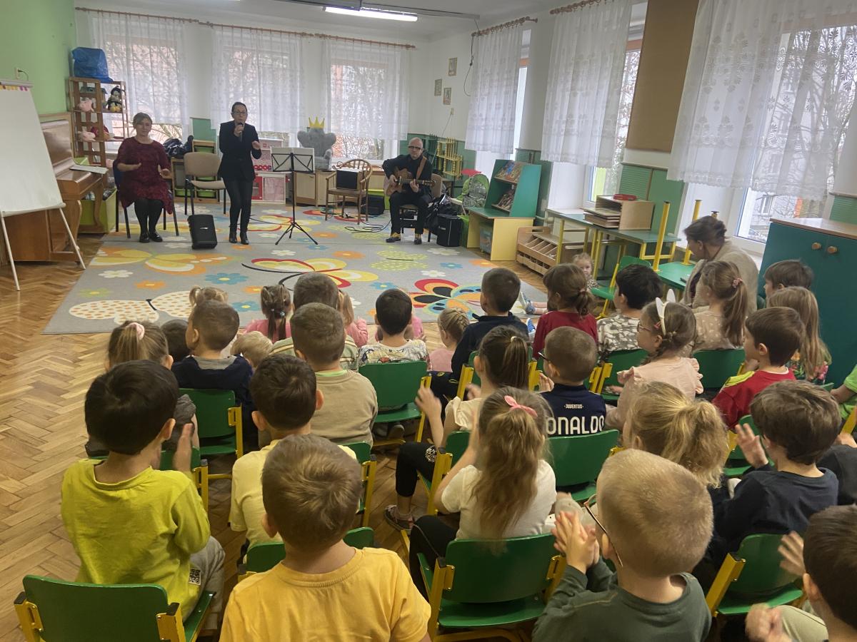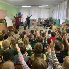 15 grudnia w naszym przedszkolu odbył się koncert w wykonaniu muzyków z Filharmonii Świętokrzyskiej pt. „Opowieść wigilijna”. Podczas muzycznego spotkania dzieci wysłuchały historii pełnej magii i tradycji, którą ilustrowały kolędy z różnych stron świata i świąteczne piosenki.