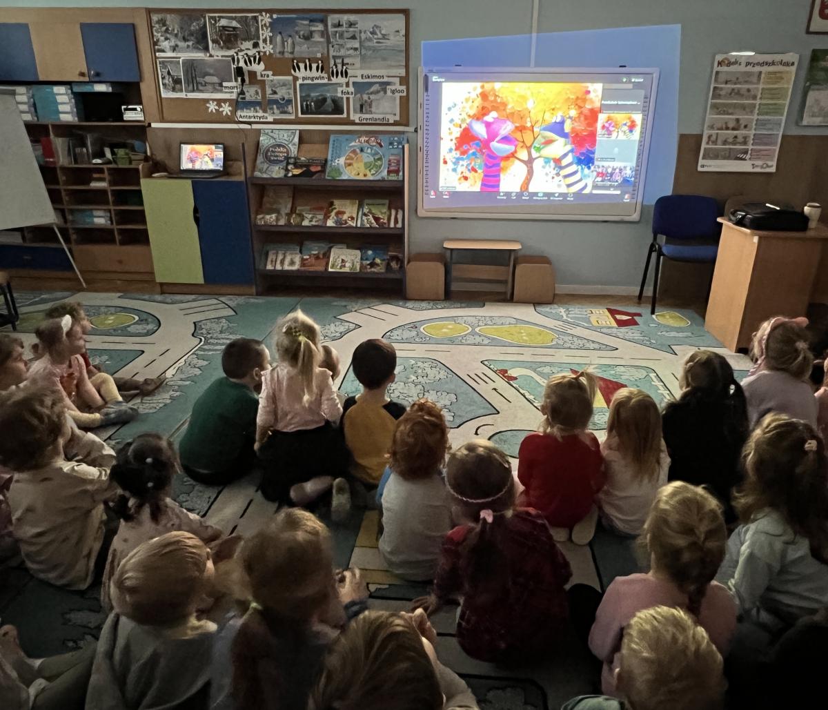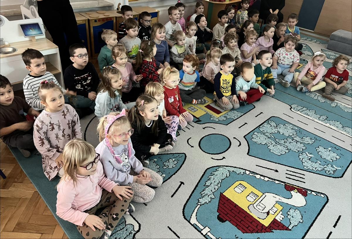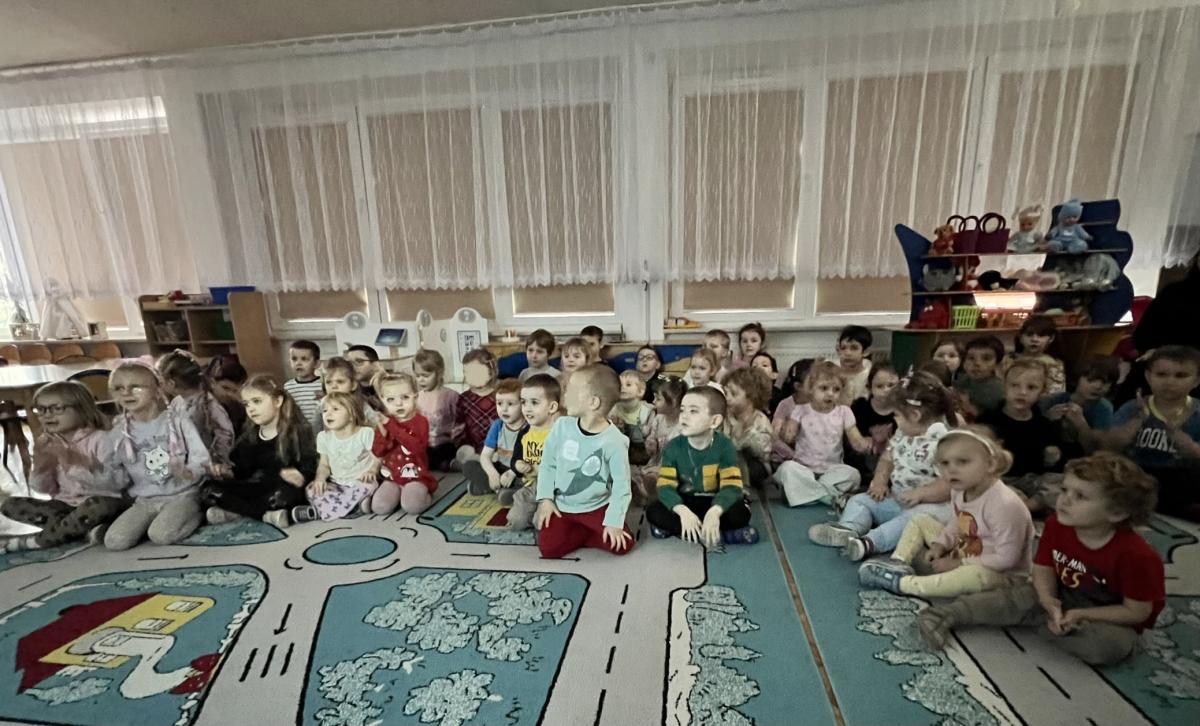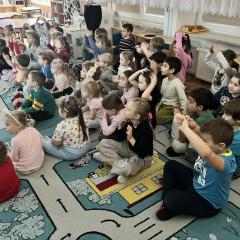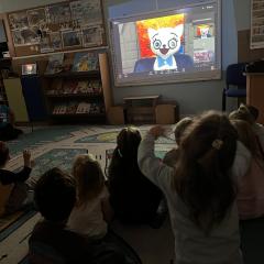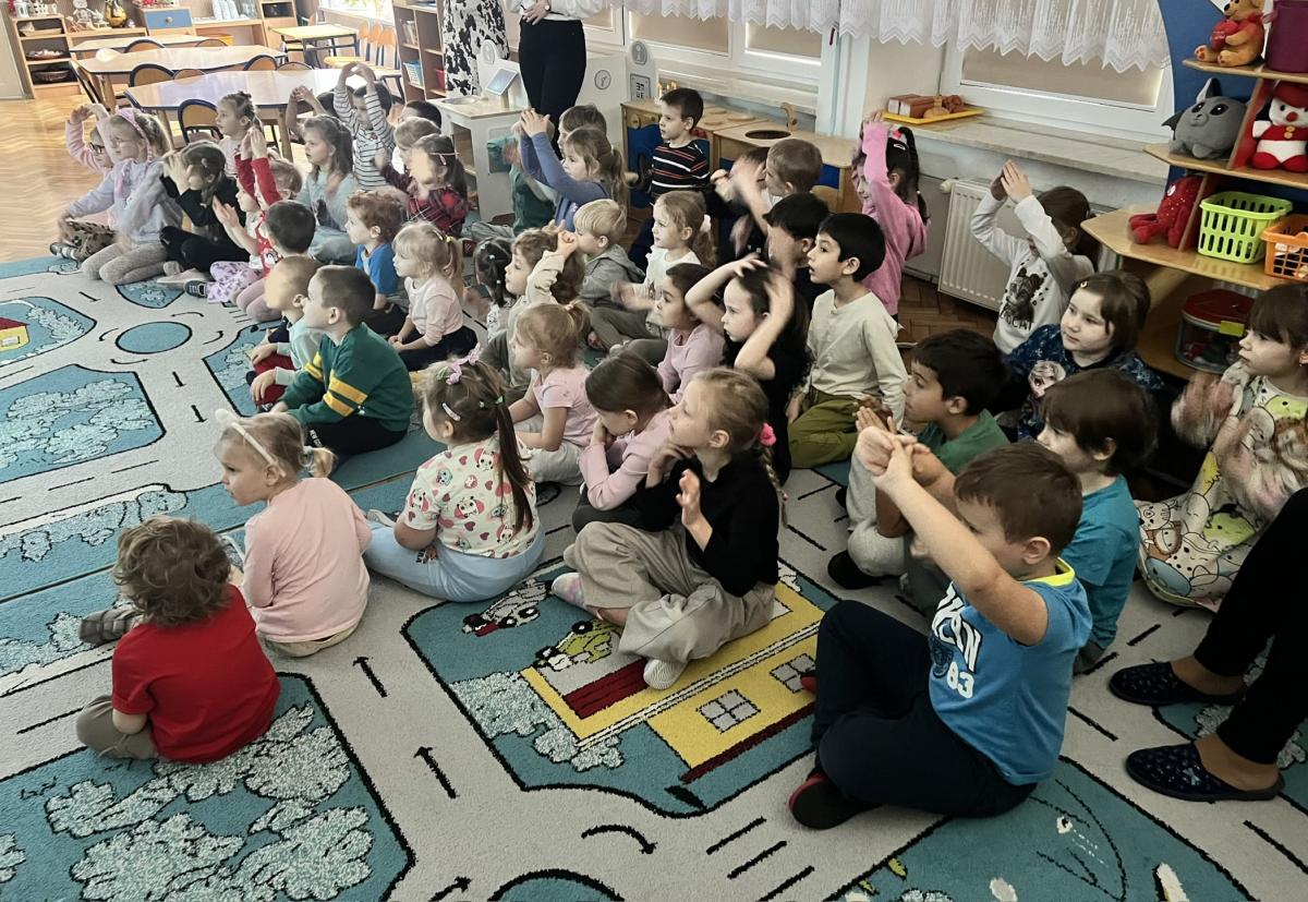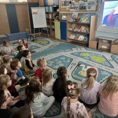 Przedszkolaki wzięły udział w wirtualnym spotkaniu z Kicią Kocią w ramach akcji „Bibliusiowe czytanki na wesołe poranki” zorganizowanej przez Wojewódzką Bibliotekę Publiczną im. Witolda Gombrowicza w Kielcach. Pacynki - Bibliuś i Woluminka, zabrały dzieci w czytelniczą wyprawę, prezentując książki: „Kicia Kocia na lotnisku” oraz „Kicia Kocia w pociągu”.